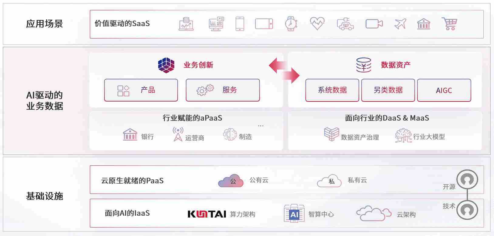 数字时代,,围绕企业数字化转型的关键要素,,快盈VIII数码开创性的提出数云融合战略和技术体系框架,,着力在云原生、、、数字原生、、、AI原生和信创产业上架构产品和服务能力,,为处在不同数字化转型阶段的快消零售、、、、汽车、、、金融、、、、医疗、、政企、、、教育、、、运营商等行业客户提供泛在的敏捷IT能力和融合的数据驱动能力,,,,构建跨界融合创新的数字业务场景和新业务模式,,,,助力企业级客户建立面向未来的核心能力和竞争优势,,,全面推动社会的数字化、、智能化转型升级。。。