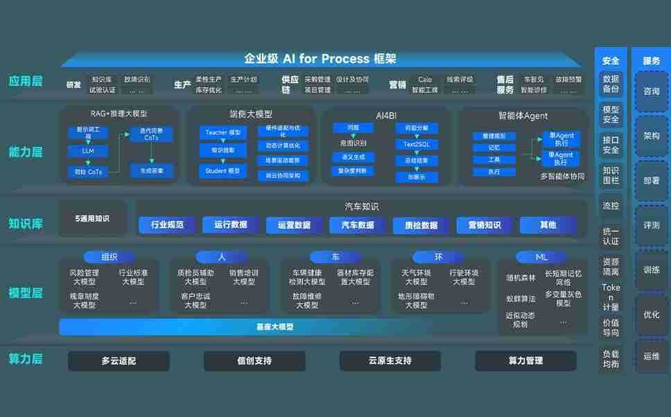 端到端的一站式AI工作空间深度融合了从企业战略规划到日常经营的全流程业务板块,,,定向解决车企内部领域多、、部门多、、、、链条长、、、、场景碎片化等难题,,,,支持车企快速构建以AI为核心的生产力写作体系,,实现任务执行与AI能力的无缝集成与交互